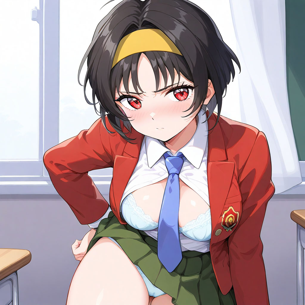 | ■ファイナルロマンスRの涼子。ゲーム中だとキャラ紹介画面以外で制服姿は見られないのでAI様々 |